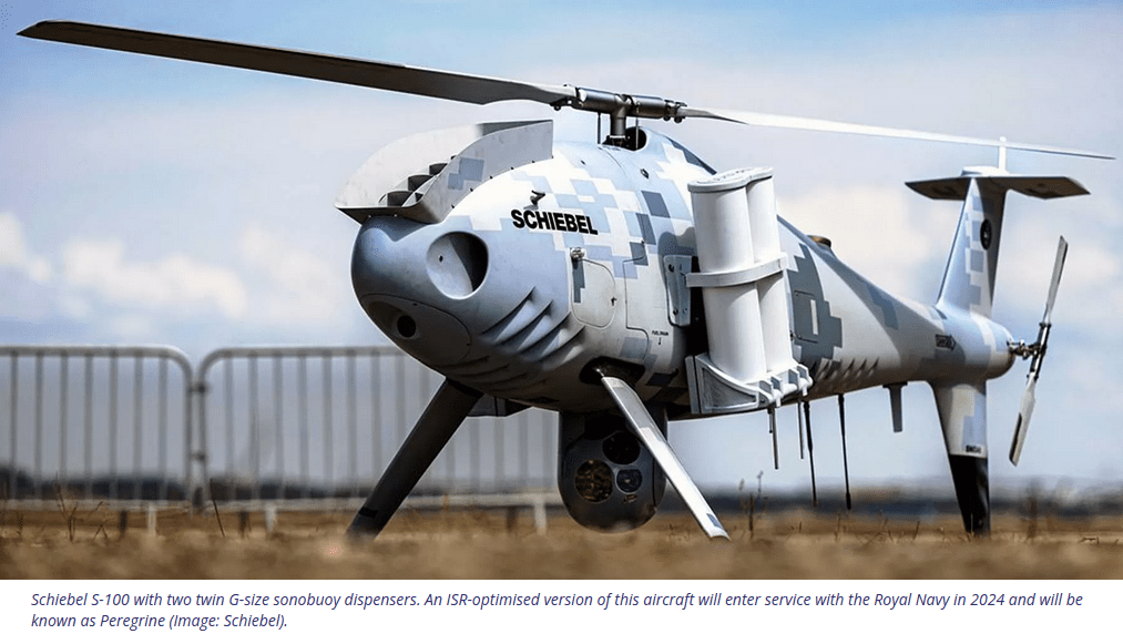 Döner kanatlı İHA’lar donanmalarda, özellikle de gemilerden kullanıldığında İstihbarat, Gözetleme ve Keşif görevlerinde başarılı uygulamalar bulmuştur. Peregrine olarak bilinen S-100 yakında RN’de faaliyete geçecektir. ASW ‘bulma’ kabiliyetlerinin entegrasyonu ISR’nin ötesinde muhtemel bir sonraki adımdır ve bu tüm önde gelen üreticiler tarafından kabul edilmektedir. Ünlü REPMUS tatbikatı gibi canlı denemeler sırasında, ASW görev modülleri ile donatılmış İHA’lar açık bir potansiyel göstermiştir. Devam eden çabalar, sonobuoy gözetleme (veri aktarımı) ve konuşlandırma yetenekleri de dahil olmak üzere orta ölçekli döner kanatlı İHA’ların yeteneklerini geliştirmeye yöneliktir. Önde gelen örnekler aşağıda resmedilmiştir.