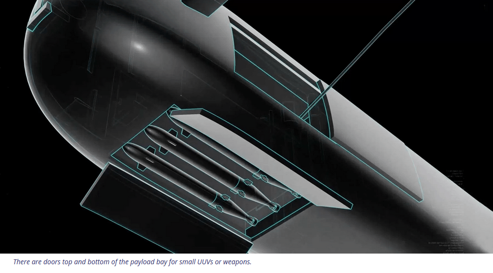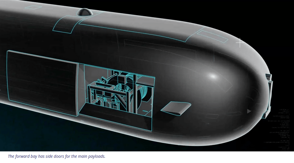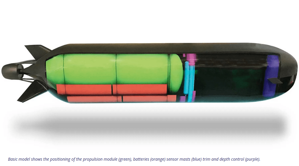 Özellikle, gemi mevcut denizaltı filosundaki herhangi bir gemiden daha derine dalabilecek ve dayanıklılığı belirsiz bir şekilde ‘birkaç gün’ olarak tanımlanıyor. Modüler bir tasarıma sahip olan geminin kapasitesini iki katına çıkarmak için isteğe bağlı bir yük bölümü eklenebilirken, ilave bataryalar takılarak dayanıklılık arttırılabiliyor. Basitlik, maliyet ve ağırlık açısından yeniden şarj için dizel jeneratörlere sahip değildir ancak bataryaların güç yoğunluğu gelişmeye devam etmektedir. Gemilere yerleştirildiklerinde yüksek güçlü bataryaların yarattığı potansiyel yangın tehlikesi, yangınla mücadele ve hasar kontrolünün hafifletilmesi açısından bir zorluk teşkil edecektir.