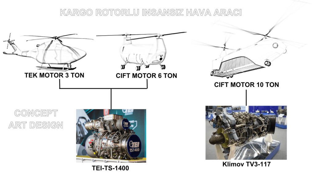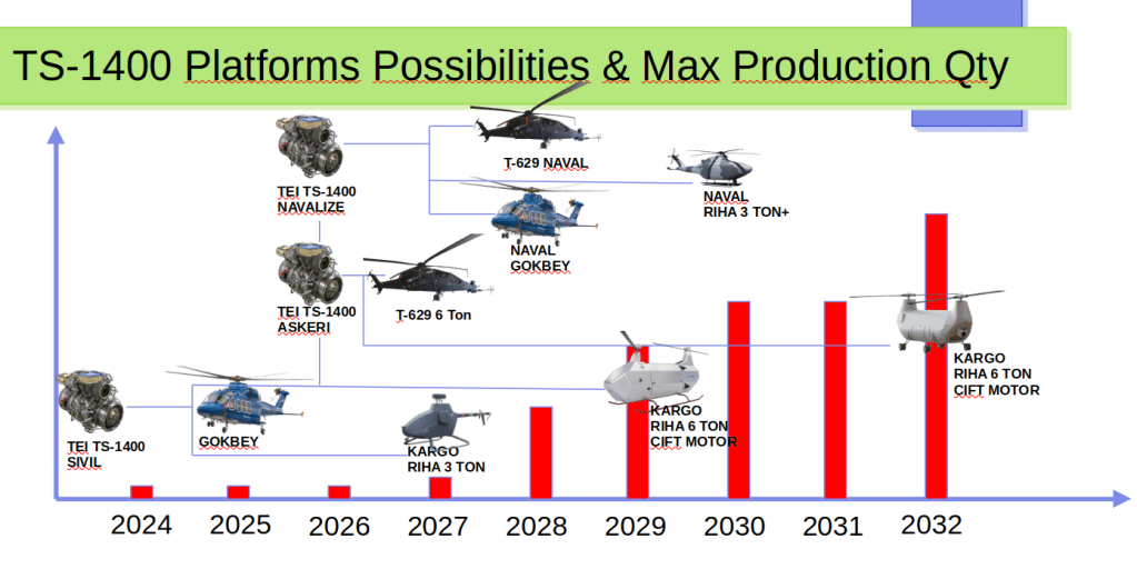 Elimizde hali hazırda sivil sertifikasyon sürecini devam ettiren bir motor var ve bu motor etrafında biçimlenecek Tek Motor Kargo RIHA 3 Ton , Çift Motor Kargo RIHA 6 Ton olmak üzere Gökbeyide dahil edersek 3 farklı platform sivil TS-1400 kullanılarak üretilebilir.