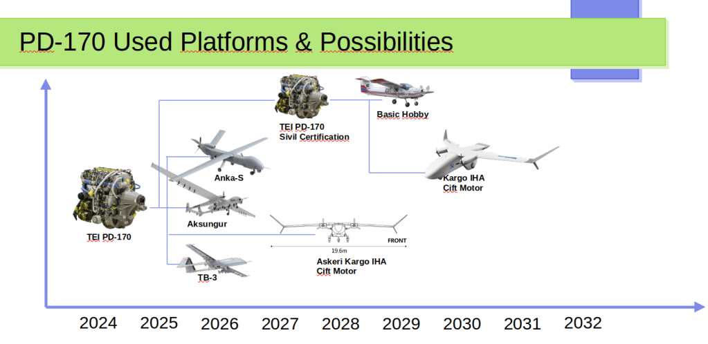 Motorun askeri versiyonu kullanılarak insansız saldırı helikopteri tek motor ve yine askeri amaçlı kargo helikopteri çift motor gibi platformlar tasarlanarak kullanımı tek ürün-çoklu platform olmak üzere sunulabilir.
