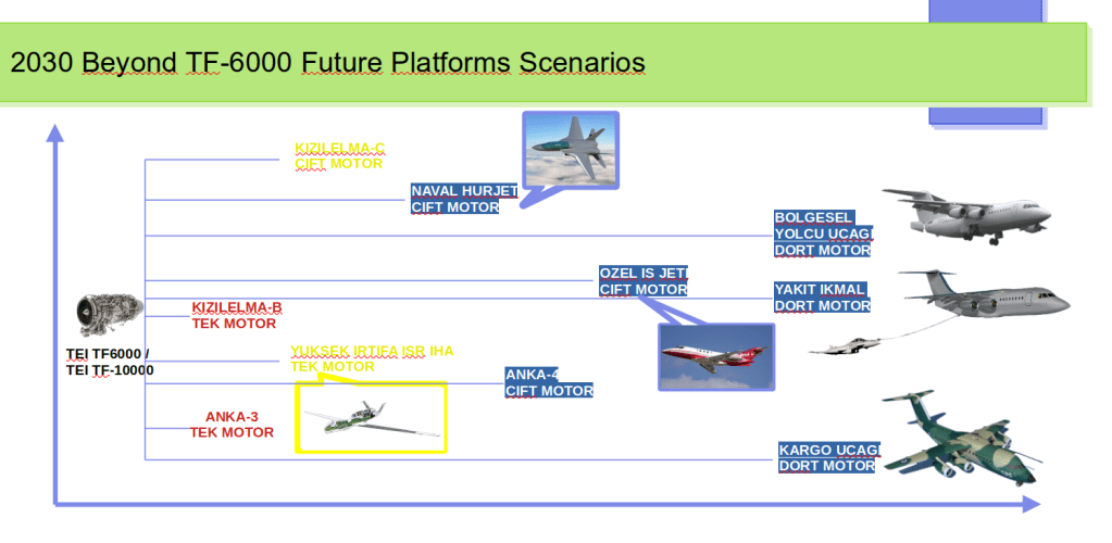 Onerme : TEI TF-6000/10000 motorlarında ise, insansız jet motorlu uçaklar hedefleniyor. Çerçeve dışına çıkılmaması dikkate şayan. Demek ki çerçeve, bir sebep ile çevrelenmiş durumda.