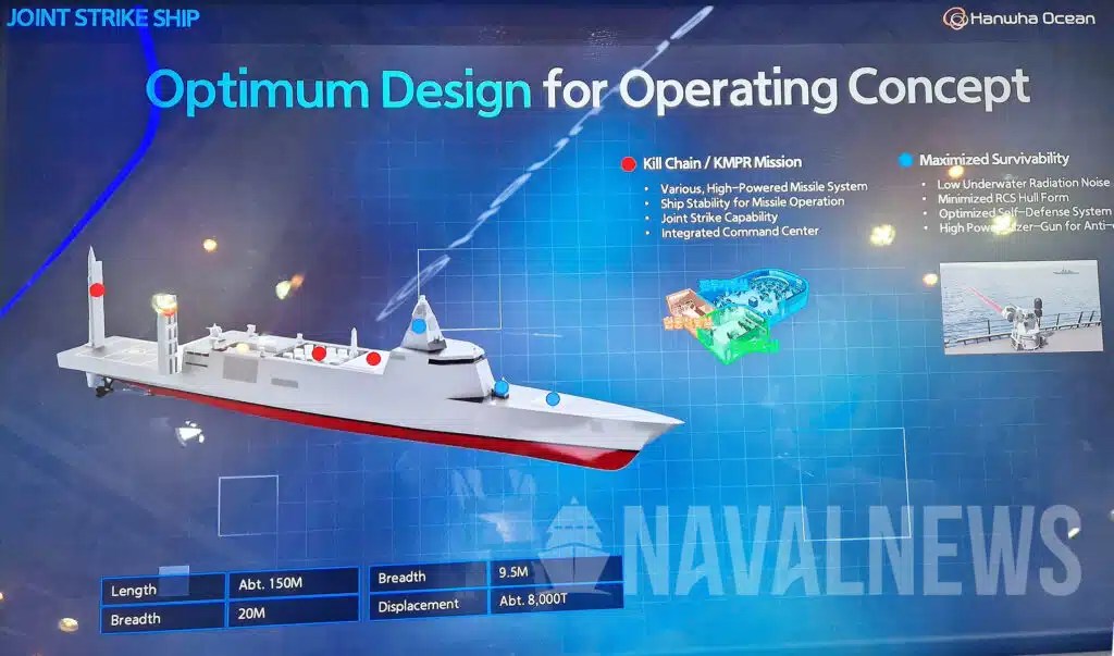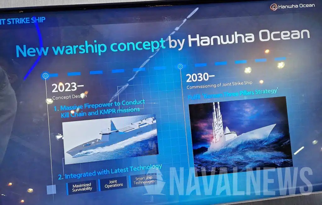 Hanwha Ocean (daha önce DSME olarak biliniyordu) tarafından tanıtılan Müşterek Taarruz Gemisi modeli 100 füze içeriyordu ve bu yıl MADEX fuarının en önemli etkinliklerinden biriydi.