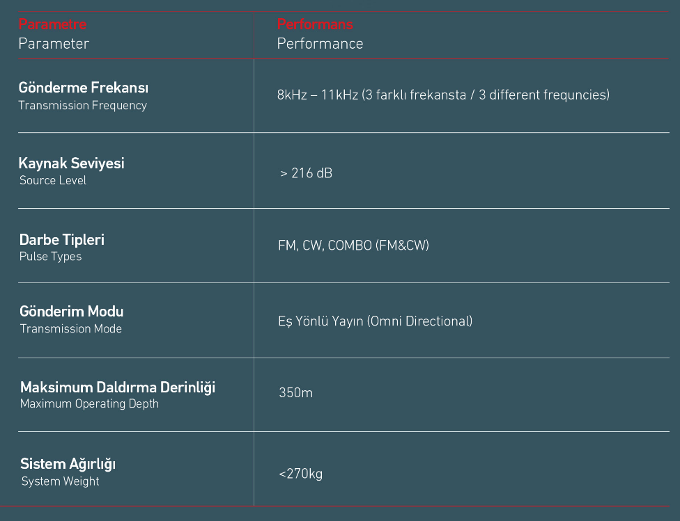Tasarlanacak platformun ORKUN-2053’u yada benzeri bir helikopter sonarini tasiyabilecek kabiliyete sahip oldugunu gostermektedir. Gorev yuklerinin moduler olmasi tasarimda on gorulurse 9 adet sonoboyun platforma entegrasyonuda mumkundur. MGW un 2.722 kg olarak hesaplanan platformun hem sonar hemde sonoboy salan tasima kabiliyetine haiz olacagi dusunulebilir. Yaklasik 4 saatlik gorev suresi ile yeterli olacaktir.