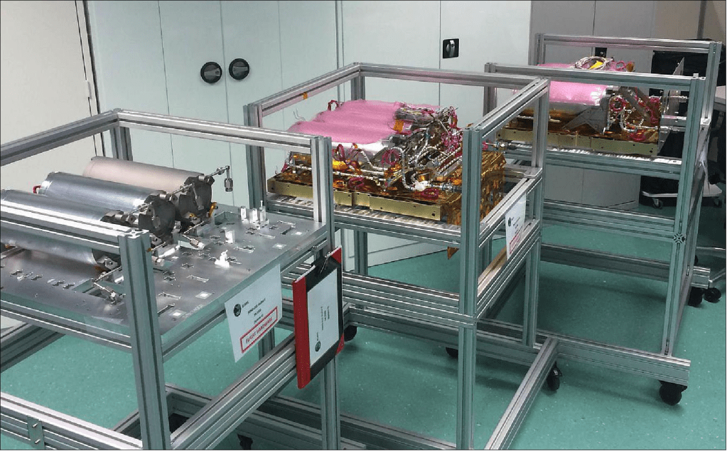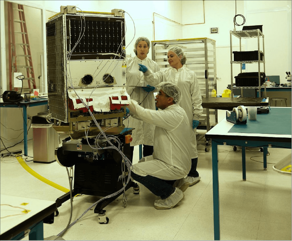 SkySat HPGP tahrik modülleri: Şekil 38’de gösterildiği gibi, SkySat HPGP tahrik sistemi modüllerinin tamamı da bir “montaj hattı” şeklinde üretilmektedir. Standartlaştırılmış prosedürlerin ve destek ekipmanlarının uygulanmasıyla, birden fazla sistem aynı anda üretimin çeşitli aşamalarında bulunabilmekte, böylece gelen bileşenlerin ilgili sistemlere akışı kolaylaştırılmakta ve herhangi bir sistemin bireysel entegrasyon programı nedeniyle anahtar takımların “atıl” kalma olasılığı en aza indirilmektedir.