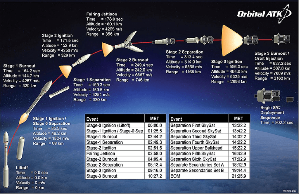 29) Stephen Clak, ”Vega rocket hauls up quintet of Earth observation satellites,” Spaceflight Now, Sept. 16, 2016, URL: https://spaceflightnow.com/2016/09/16/vega-rocket-hauls-up-quintet-of-earth-observation-satellites/30) ”Update: Includes Orbital ATK’s Statement and Planet’s Doves and SkySats Successfully Launched by Orbital ATK’s Minotaur C Rocket,” Satnews Daily, 31 Oct. 2017, URL: http://www.satnews.com/story.php?number=73461139031) Mike Safyan, ”Planet Doubles Sub-1 Meter Imaging Capacity With Successful Launch Of 6 SkySats,” Planet, Oct. 31, 2017, URL: https://www.planet.com/pulse/tag/skysat/32) ”Mission Update: Minotaur C SkySat Launch,” Orbital ATK, Oct. 2017, URL: https://web.archive.org/web/20171101001727/https://www.orbitalatk.com/news-room/feature-stories/MinotaurC_SkySat_Mission-Page/default.aspx?prid=28333) Jeff Foust, ”Minotaur launches 10 satellites for Planet,” Space News, October 31, 2017, URL: http://spacenews.com/minotaur-launches-10-satellites-for-planet/34) Stephen Clark, ”Spaceflight’s 64-satellite rideshare mission set to last five hours,” Spaceflight Now, 3 December 2018, URL: https://spaceflightnow.com/2018/12/03/spaceflights-64-satellite-rideshare-mission-set-to-last-five-hours/35) ”Spaceflight SSO-A: SmallSat Express Mission,” SpaceX, 3 December 2018, URL: https://web.archive.org/web/20181204085402/https://www.spacex.com/news/2018/12/03/spaceflight-sso-smallsat-express-mission