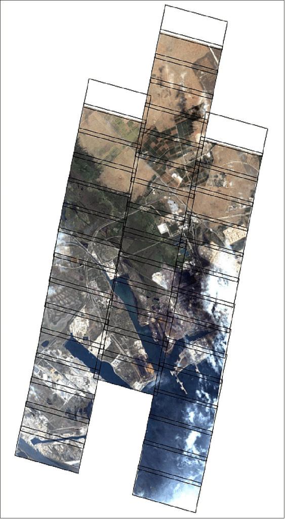 Çerçeve ürünü: Video ürününe ek olarak, daha geniş alanlar 8 km genişliğinde şeritlerle kaplanabilir. Bunlar, her üç dedektörün de örneğin 40 Hz’de yüksek oranda örtüşen bir video dizisi elde ettiği bir “pushframe” modunda elde edilir (Smiley vd.,2014). Tek bir pankromatik “ana” kareyle örtüşen tüm pan ve çok spektral görüntüler bir süper çözünürlük algoritması kullanılarak birleştirilir ve kaynaştırılır. Füzyon sırasında, çözünürlüğü 1,1 m’den 90 cm’ye çıkarmak için bir süper çözünürlük işlemi kullanılır. Pankromatik, multispektral ve pansharpened görüntülerin çeşitli varyantları teslim edilir.