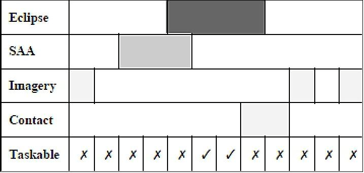 - Yerleşik deponun temizlenmesi gibi belirli kısıtlamaları olan bazı bakım faaliyetlerinin uydu bir yer istasyonuyla temas halinde değilken yürütülmesi gerekir. Bu “arka yörünge” faaliyetlerini yürütmek için uygun bir yürütme zamanı bulunmalı ve komutlar dizisi bu zamandan önce yerleşik yazılıma yüklenmelidir. Geleneksel olarak bu görevler operatörler tarafından manuel olarak gerçekleştirilirdi ve bu da yalnızca uyduların ne zaman görüntü toplayacağının değil, aynı zamanda yörünge durumu ve uydu tutumunun da tam olarak anlaşılmasını gerektirirdi. Örneğin, uydu Güney Atlantik Anomalisi’nden (SAA) geçecek mi ve faaliyet gerçekleştirilirse uydu güvenli olmayan bir oryantasyonda olacak mı? Bu sürecin otomatikleştirilmesi, daha sonra bir faaliyetin yürütülmesi için uygun zamanın belirlenmesi mantığına uygulanabilecek net bir dizi kısıtlamanın tanımlanmasını gerektiriyordu. Uygun bir pencere oluşturulduktan sonra, komutlar dizisi uydu tarafından gerçekleştirilecek faaliyetlerin içine yerleştirilebilir.