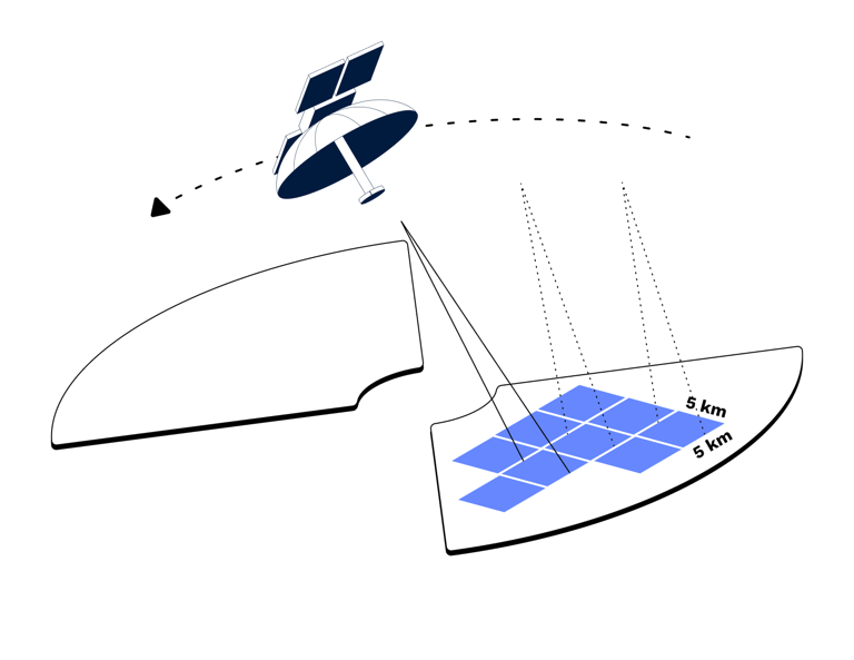| Ground range | 170 – 1100 km on either side of the flight path |