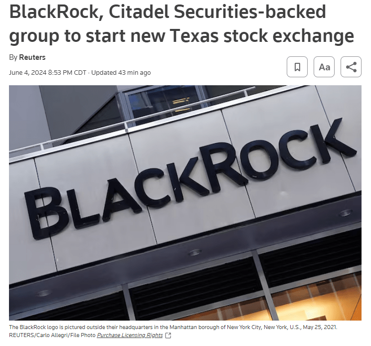 BlackRock and Citadel to start a new stock exchange based in Texas that is set to compete against the New York Stock Exchange
