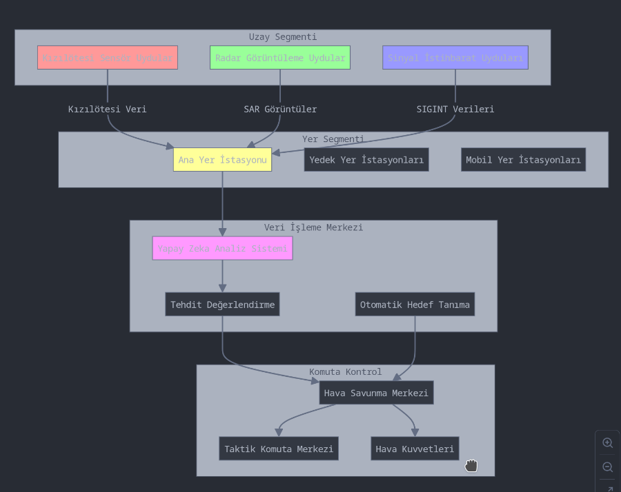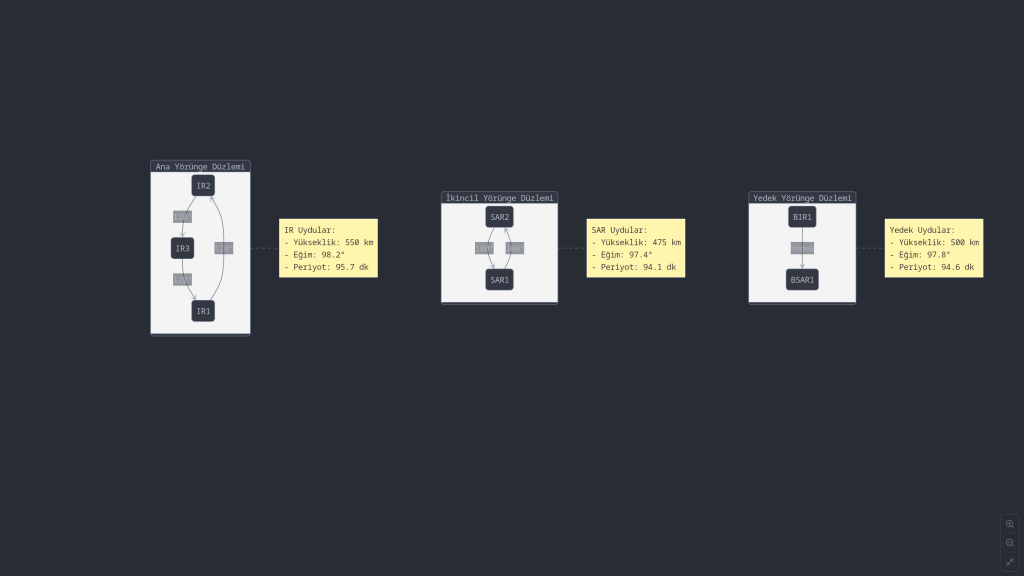 Bu uydu ağı, Türkiye’nin stratejik ilgi alanlarının sürekli gözetimi için optimize edilmiştir. Sistem, potansiyel tehditlerin erken tespiti ve takibi için gereken kapsama ve tepki sürelerini sağlayacak şekilde tasarlanmıştır.
